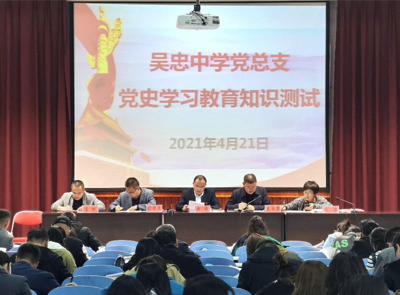 根据市教育局党组《关于在市直属教育系统开展党史学习教育的实施方案》的通知和《吴忠中学党总支关于开展党史学习教育的安排意见》中关于书记带头讲党课的相关要求和安排。4月21日下午,吴忠中学党总支书记、校长胡锋同志以“知党史 感党恩 跟党走”为题,为全校党员教师上了一堂深刻的党史学习教育专题党课。吴忠中学党总支副书记王永康,总支委员、副校长刘银良,总支委员、副校长马力,副校长李彬及100余名党员参加聆听。