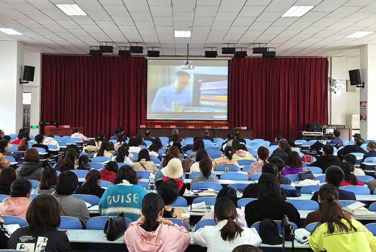 参会教师观看廉政警示教育片。