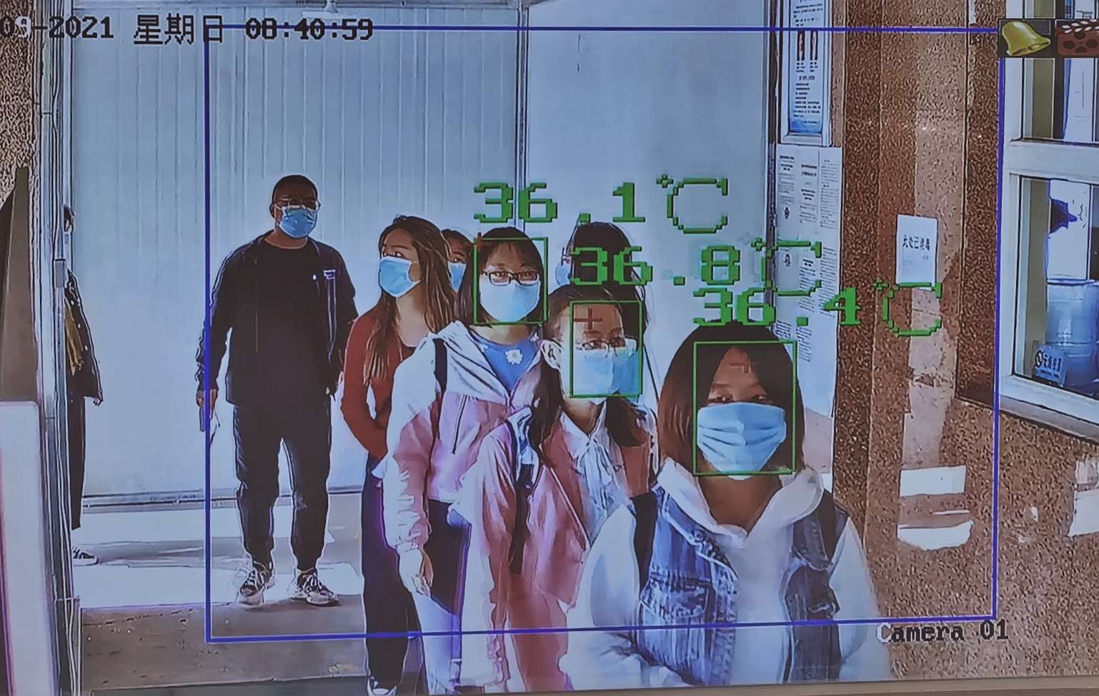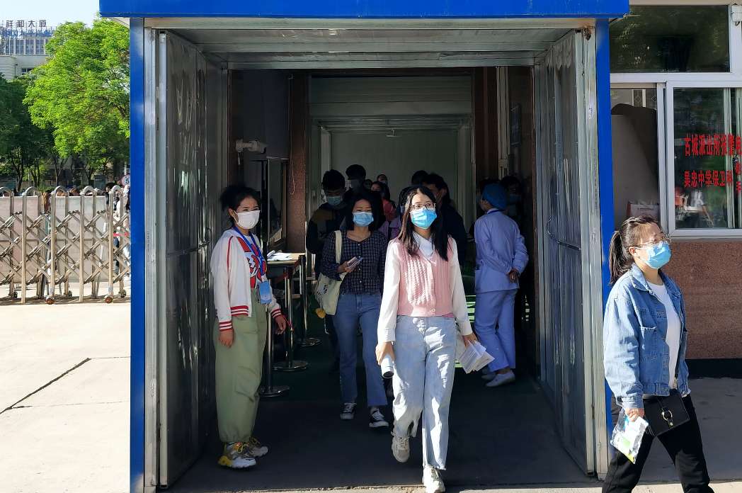 考生进过测温通道