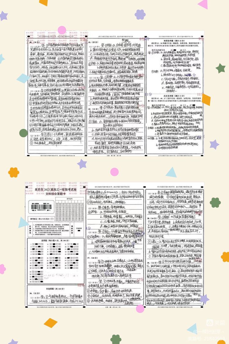 第一次模拟考试优秀试卷展示。