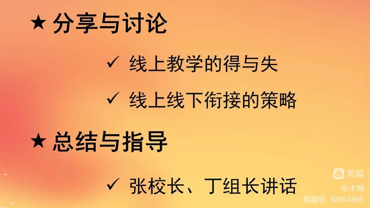 会上,老师们分享了自己网课的成功经验。李萍老师以电脑为主要教学工具,在课堂教学中会尽量慢一点,力求保证学习效果,并通过连麦提问,进行有效的师生互动。她通过电脑、微信及时和学生进行线下交流,了解学生学习情况。每节课后通过检查听课人数、直播数据,了解听课时长不够以及缺课学生的原因,监督学生认真学习。