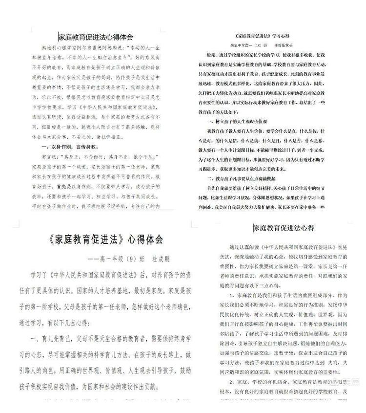 组织全校家长学习《中华人民共和国家庭教育促进法》并撰写心得体会。