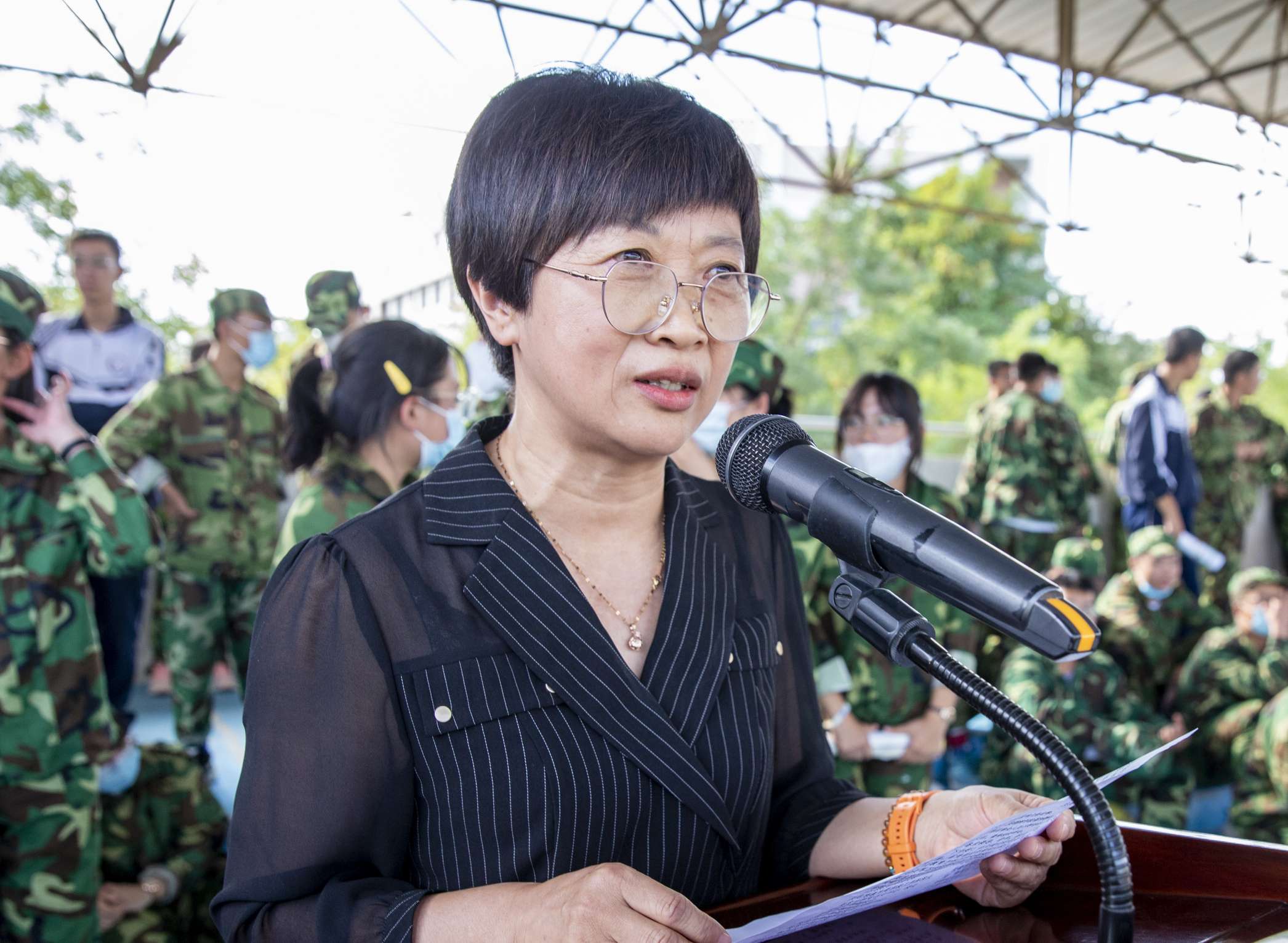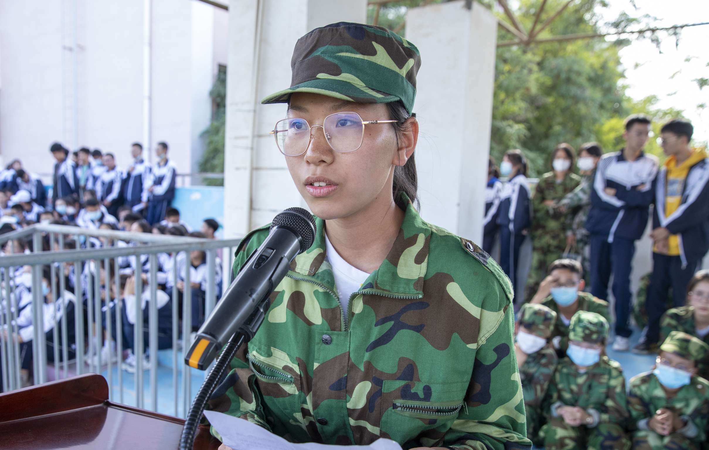 高一(5)班金嘉瑶同学代表全体军训学生发言