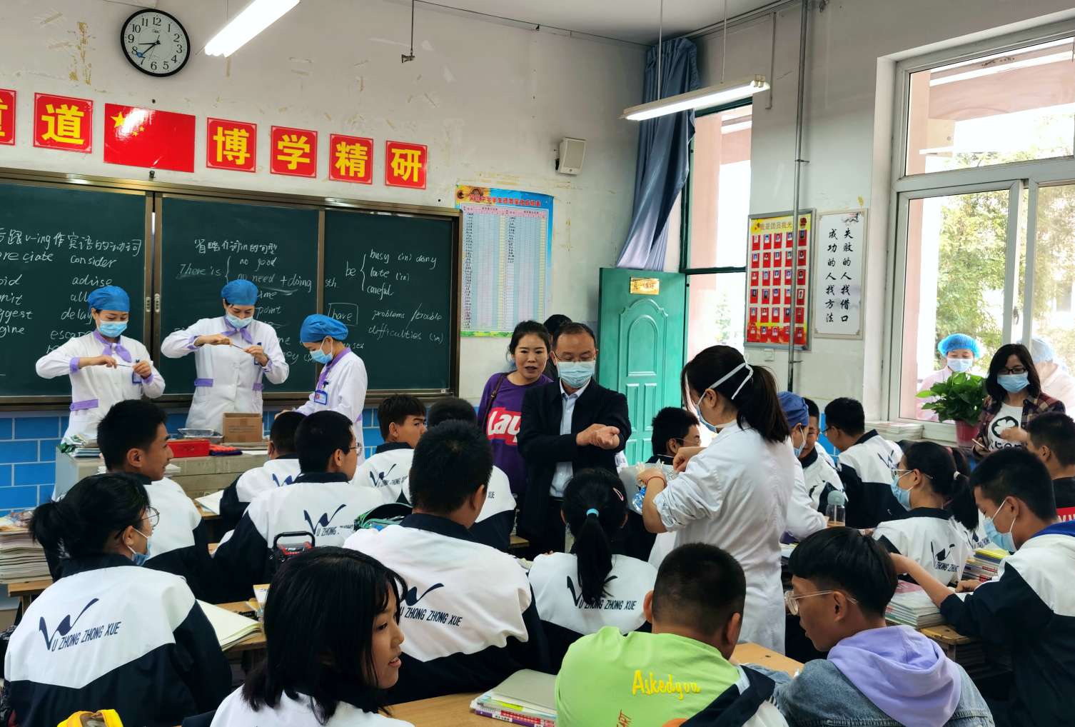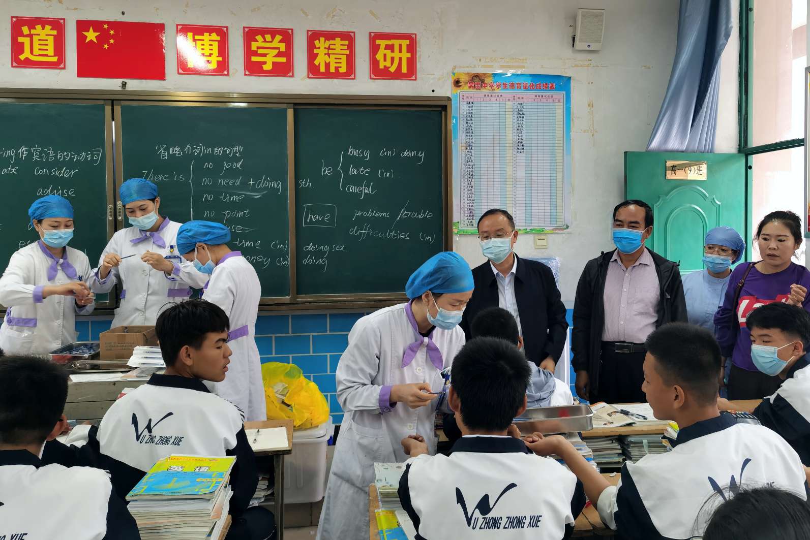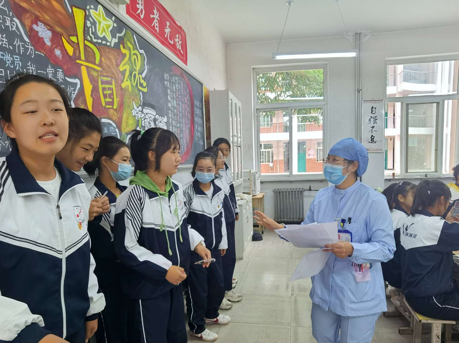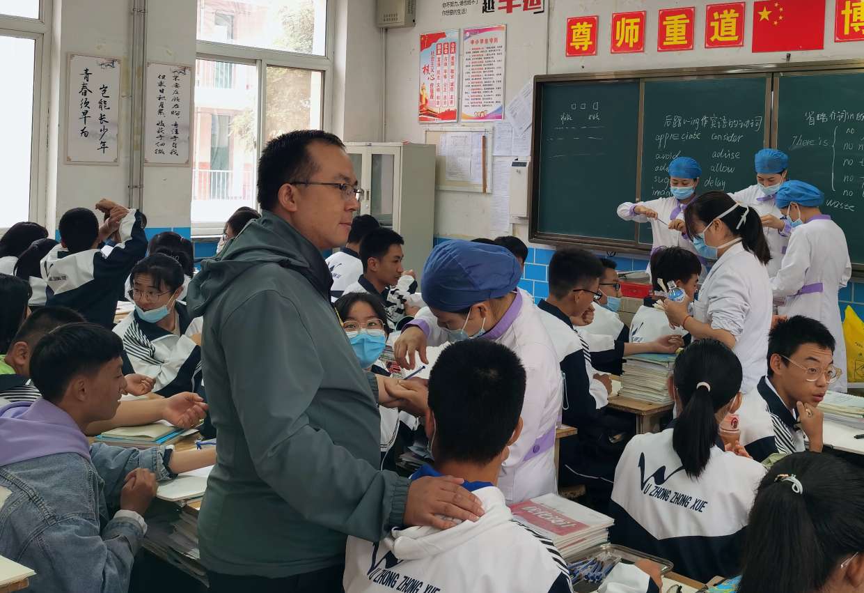 校党总支书记、校长胡锋、副校长马力及政教处主任马文清、副主任丁占军等领导亲临现场,对此次结核病主动筛查进行巡查。