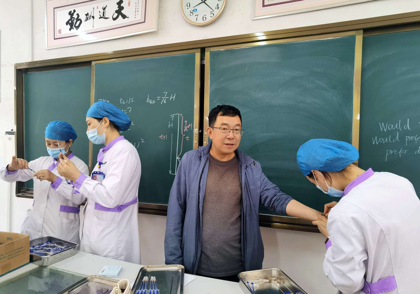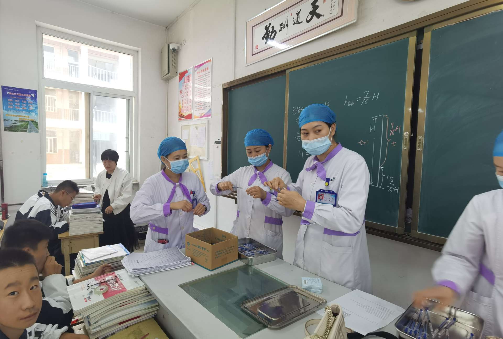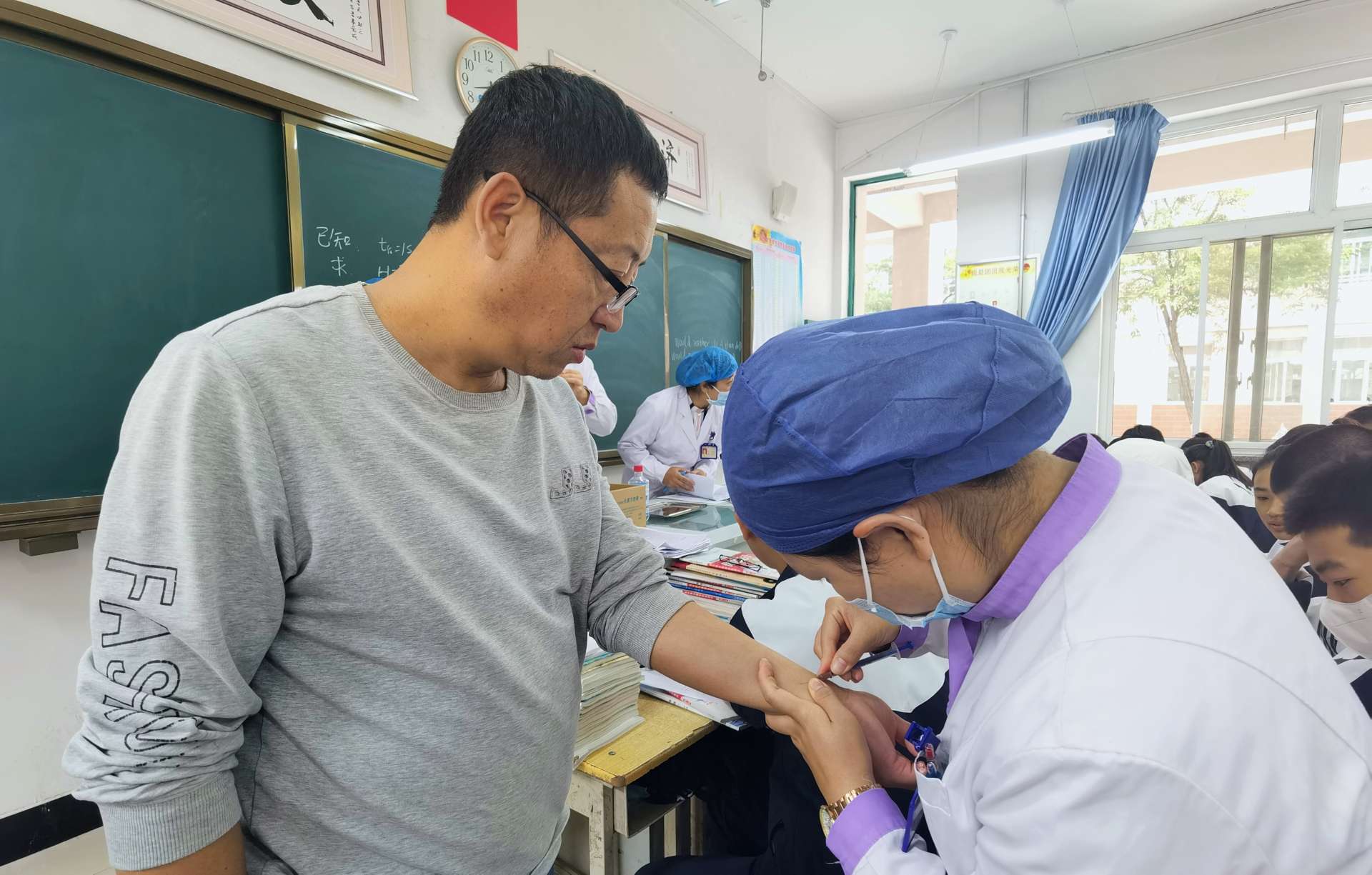 校党总支书记、校长胡锋、副校长马力及政教处主任马文清、副主任丁占军等领导亲临现场,对此次结核病主动筛查进行巡查。