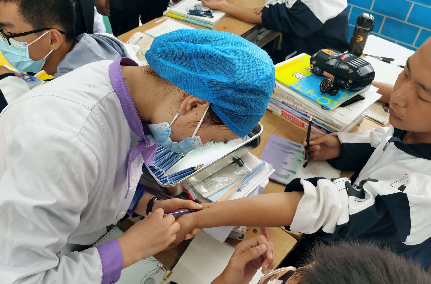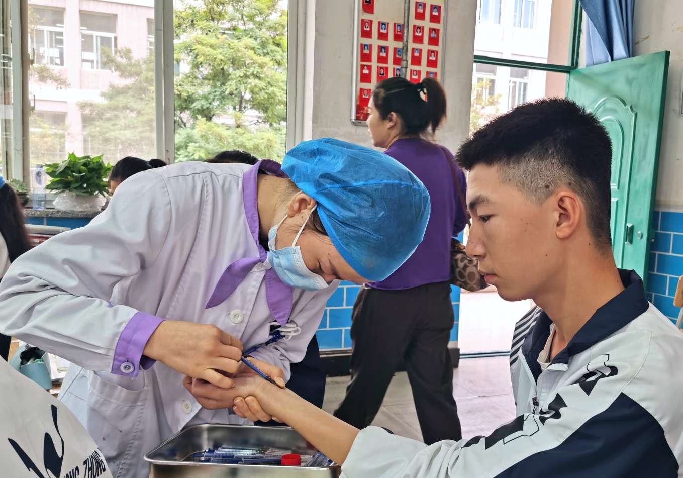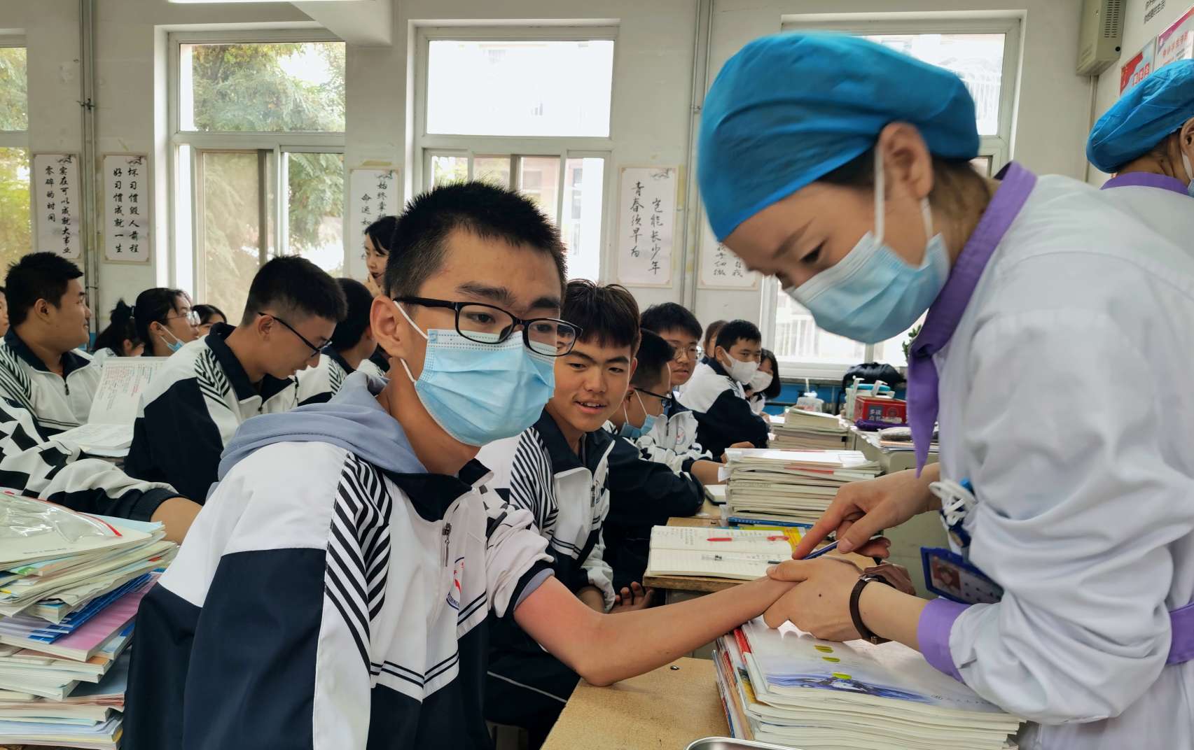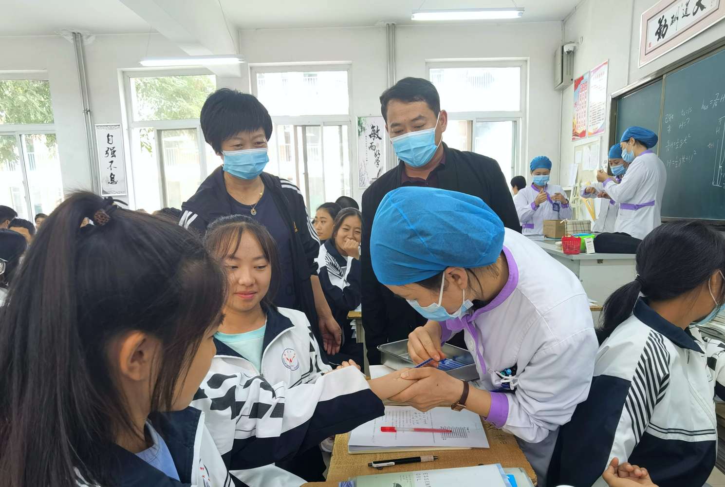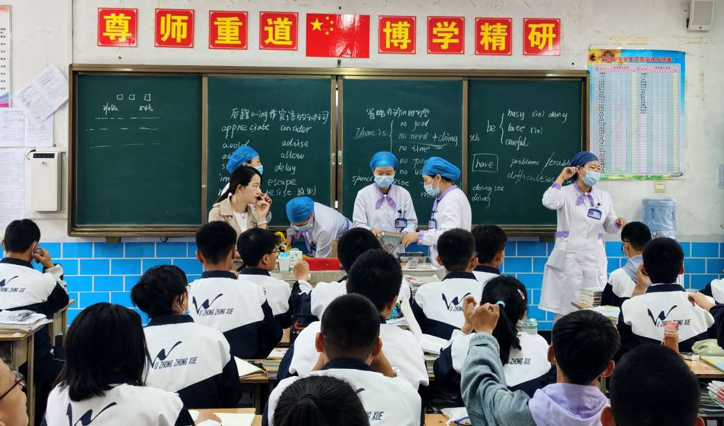 学校政教处、医务室及年级组积极配合,按班级有序进行,在疾控中心负责人和班主任的指导下,现场秩序井然,医务人员耐心细致地给学生做了筛查,学生未出现任何意外及不良反应。