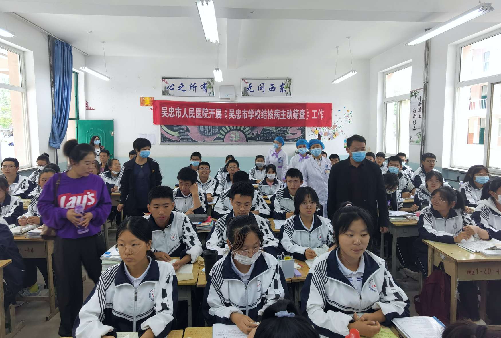 为进一步加强学校结核病防控工作,根据《吴忠市学校结核病主动筛查工作方案》的通知精神,有效防范学校结核病的传播和流行,确保广大师生身体健康与生命安全,9月24日由吴忠市疾控中心组织,吴忠市人民医院10多名医护人员对吴忠中学高一年级新生、班主任及新入职的老师进行结核病主动筛查。