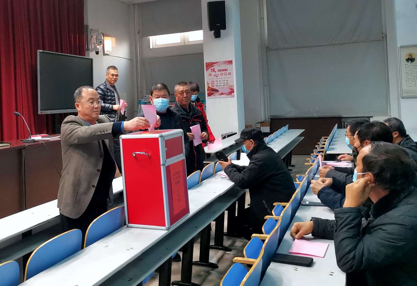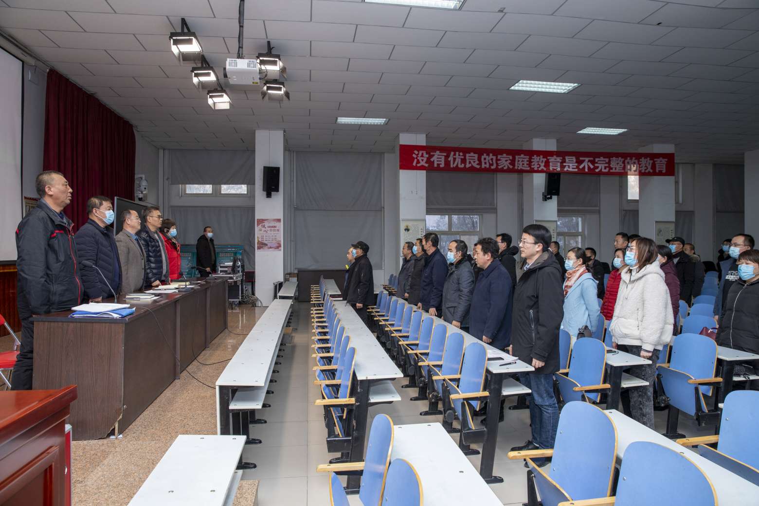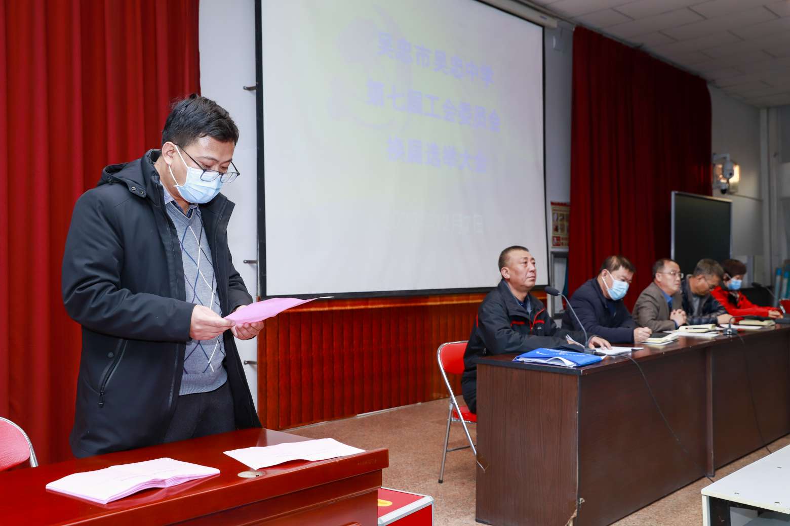 吴忠中学第六届工会委员会在市教育系统工会和学校党总支的领导下,团结全校教职工,为学校的教育教学工作和学校的发展做了大量的工作,根据《中华人民共和国工会法》,第六届工会委员会任届期满,经学校党总支2020年11月18日会议批准,11月19日报请市教育系统工会同意批复,于12月7日下午召开了第七届工会委员会换届选举大会。大会在庄严的国歌声中拉开了序幕。