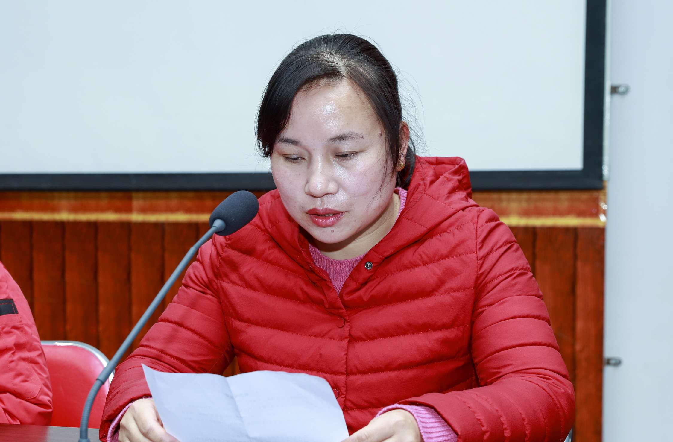 新当选的工会主席满海燕同志代表新一届工会委员做了表态发言。