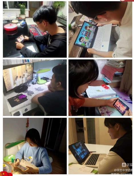 因为疫情,同学们居家收看。瞧,同学们都在认真学习,用心聆听。
